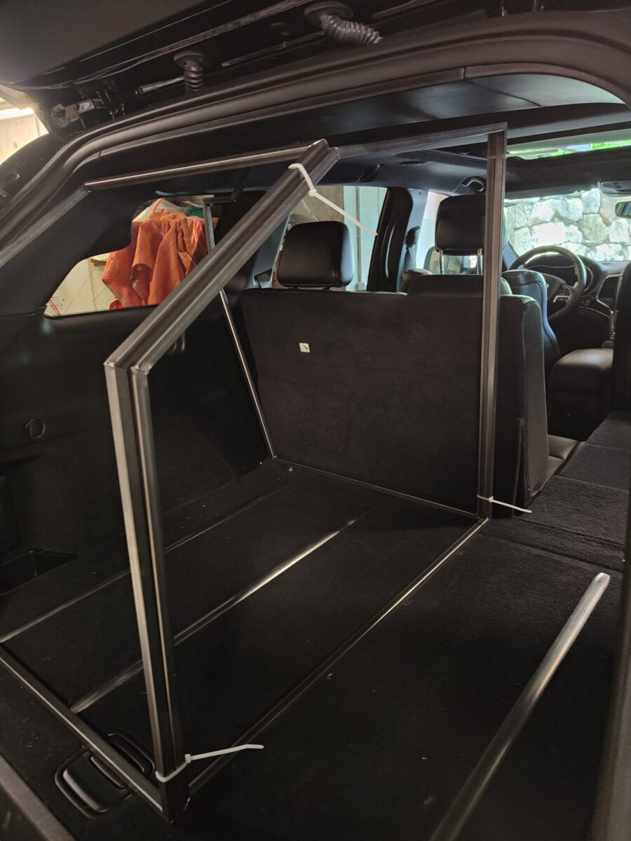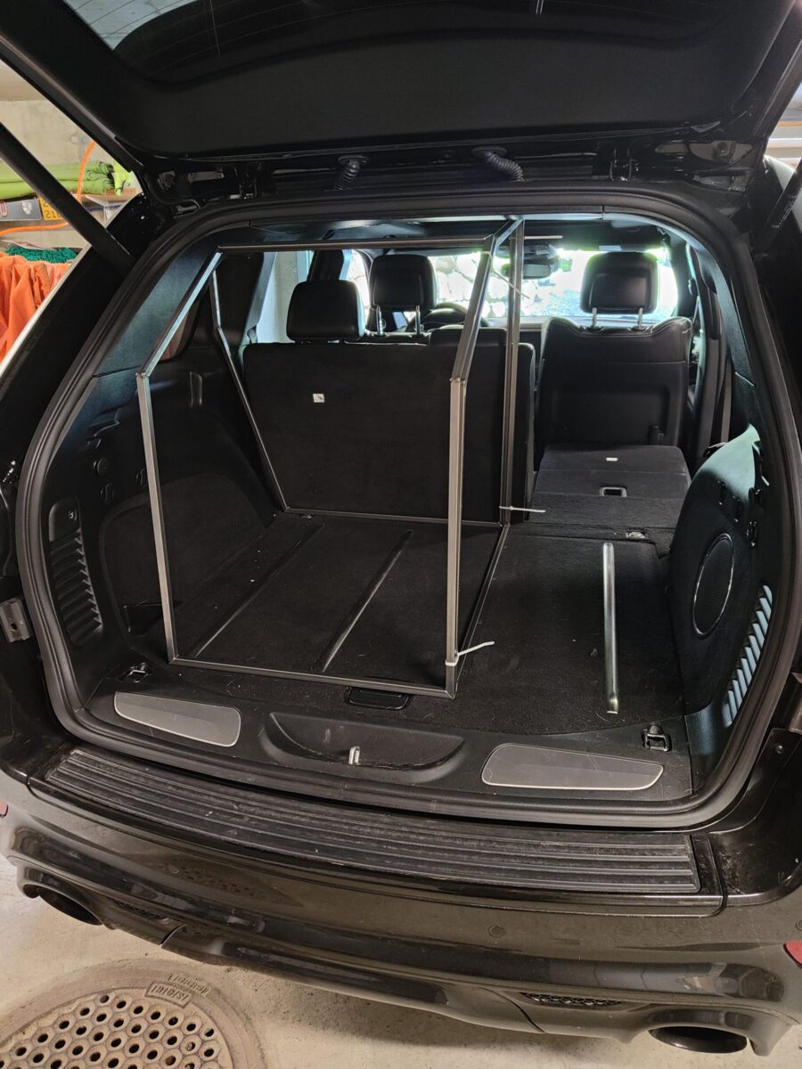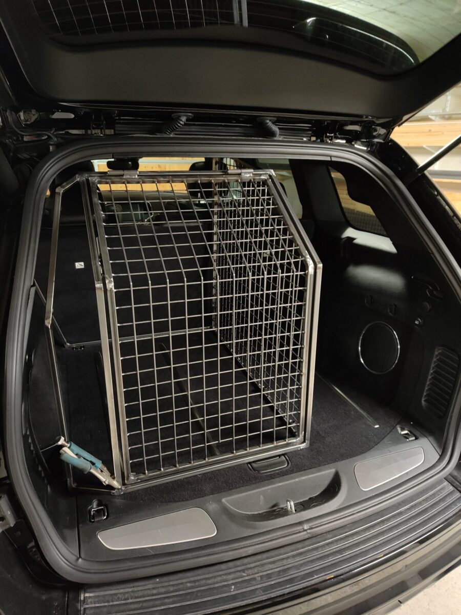 Der Partner von Tamara, die Tierpsychologin, Tierpflegerin und Gründerin von ALTERNATIVES HUNDETRAINING ist, hat auch in seinem Fahrzeug Platz für Juma geschaffen. Für seinen Jeep Grand Cherokee SRT durften wir eine massgefertigte, dreiseitige Box fertigen und einbauen. Die Hündin kann ab sofort auch mit Elia sicher und komfortabel reisen.