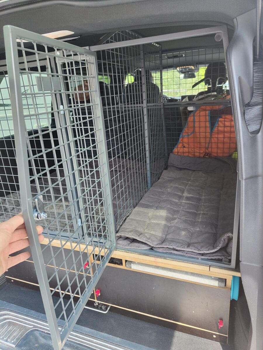 Jedem Hund seinen Platz. So auch für die Hunde von Claudia und Benno. Die Familie ist gewachsen und die beiden Hunde haben einen neuen Spielkameraden erhalten. Der dritte Vierbeiner fand vorerst in einer zusätzlichen Box auf dem Rücksitz Platz. Bei einem grossen Auto wie dem Mercedes Vito ist das zwar möglich, jedoch nicht ideal. Damit alle Hunde sicher im Kofferraum mitreisen können, durften wir die bereits vorhandene Box umgestalten.